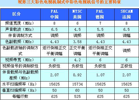 (一)每种彩色电视制式的电视机,只能接收相应于该制式的彩色电视节目由于目前现形的三大彩色电视制式对色度信号的处理方法不同,相应于不同制式的彩色电视机的解码电路也有明显不同,因而各种彩色电视制式不能兼容。那么让我们来看看三大彩色制式有什么不同吧。