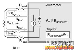 没有电流流过电压敏感线。 数字**用表用所测电压值除以已知电流,从而得到未知电阻值。