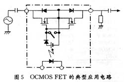 基于MOS场效应管的无触点开关由于耦合方式不同有很多类,例如采用光电耦合方式的称为光耦合MOS场效应管(OCMOS FET),原理如图5所示,虚线框内为OCMOS FET的内部原理图。