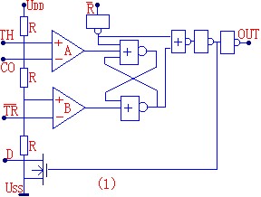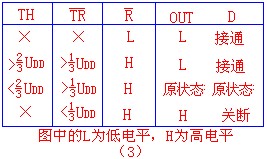 当引脚6的电平小于2/3UDD并且引脚2的输入电平大于1/3UDD,输出为原状态.