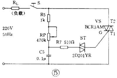 同学:您刚刚画出的电路图(图 5 )是不是可以直接作交流调压器使用呢?
