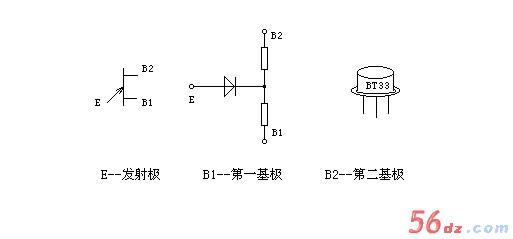 单结晶体管又叫双基极二极管,它的符号和外形见附图。