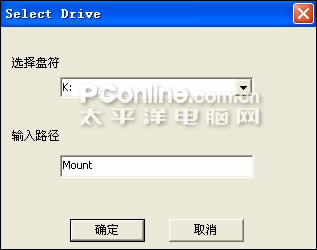 如图3,用户还可以选择“Mount……”,此时用户就可以选择建立之虚拟磁盘之盘符及文件路径。