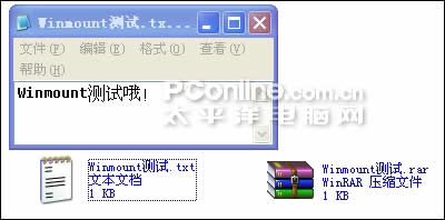1.笔者新建了一个“Winmount测试.TXT”,如图13,并将其压缩成“Winmount测试.rar”。