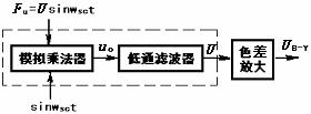 对于V同步检波器,把相应的平衡调幅信号Usinwsct换成±Vcoswsct,载波信号sinwsct换成±coswsct即可,输出相应的为V信号。经低通滤波器后得到红色差信号。