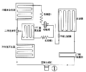 检修多循环系统的冰箱,先要判断出故障点。制冷系统出现漏、堵,表现为各室温度均高,且压缩机不停机。制冷系统堵塞多为二次修复工艺问题,或在搬运过程中造成系统油堵。 变频冰箱出现不制冷,首先要判别是主控制板、电磁阀损坏,还是制冷系统故障。由于双稳态电磁阀接受的是脉冲信号,可以通过测量其静态电阻的方法,简单判断其好坏。也可以通过使用冰箱的开关室的功能键,结合用手触摸转换室毛细管的温差去判断。如果无法判断是控制部分还是电磁阀的故障,可采取替换法。将电磁阀上的电缆拆离原阀,接到新阀上,通电后用嘴吹电磁阀的进气管,看哪个出气管导通,由此判断控制板信号是否正确。 在http://www.haojdwx.cn/Article/ShowInfo.asp?InfoID=792'>维修制冷剂泄漏故障冰箱时,根据打开工艺管瞬间压缩机内有无气体来判断。注意:在打开工艺管前压缩机不要运行,如果运行需停机半小时后再打开工艺管。若打开工艺管时,有微量气体喷出,可判断漏点在低压部分;若打开工艺管时,外部空气被吸入压缩机内;则可判定漏点在高压部分。这是因为在整个制冷系统中,低压部分占整个容积的95%,高压部分占5%,低压部分在运行时压力较低,停机时压力回升,因此在停机时漏气速度快,开机时慢。由于低压部分容积大,从开始渗漏到发现,低压部分仍有少量制冷剂存在压力总是高于大气压,因而打开工艺管时有气体喷出。而高压部分是在运行时压力增高,停机时压力降低;所以运行时漏气速度快,停机时漏得慢,随着漏气时间增长制冷剂越来越少,高压漏气量越来越多,低压部分不断向高压补充。由于毛细管的阻流作用和高压部分的不断外漏,使低压部分形成负压,所以打开工艺管时会有空气被吸入压缩机。