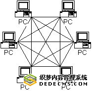 如果一个网络只连接几台设备, 简单的方法是将它们都直接相连在一起,这种连接称为点对点连接。用这种方式形成的网络称为全互连网络,如图1所示。图中有6 个设备,在全互连 情况下,需要15条传输线路。如果要连的设备有n个,所需线路将达到n(n-1)/2条!显而易见,这种方式只有在涉及地理范围不大,设备数很少的条件下才有使用的可能。即使属于这种环境, 在LAN技术中也不使用。这里所以给出这种拓扑结构,是因为当需要通过互连设备(如路由器) 互连多个LAN时,将有可能遇到这种广域网(WAN)的互连技术。
