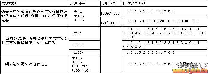 电容器上标有的电容数是电容器的标称容量。电容器的标称容量和它的实际容量会有误差。常用固定电容允许误差的等级见表2。常用固定电容的标称容量系列见表3。 表2 常用固定电容允许误差的等级