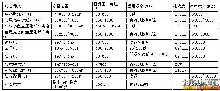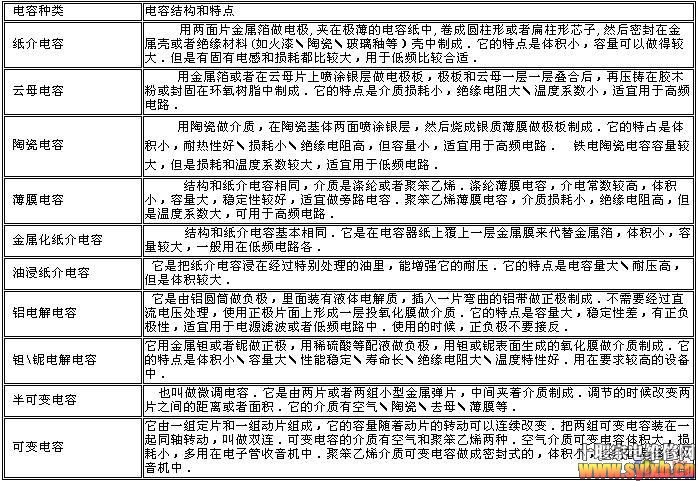 图1 电容的外形 表1 常用电容的结构和特点