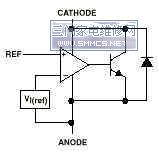 图是该器件的符号。2-3引脚分别为:阴极(CATHODE)、阳极(ANODE)和参考端(REF)。TL431的具体功能可以用如图1的功能模块示意。