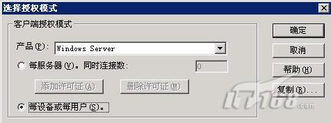 由于输入了合法用户账号、甚至超级管理员账号也不能正确登录进Web服务器,网络管理员开始怀疑起Windows Server 2003服务器系统可能对用户的同时连接数量进行了限制,因为一旦对Web服务器的站点主目录用户连接数量进行限制时,延后登录的用户是无论如何也不会访问到Web服务器中的站点内容的。想到这一点,网络管理员先是打开服务器系统的资源管理器窗口,从中找到Web服务器的站点主目录,并用鼠标右键单击该目录图标,执行快捷菜单中的“属性”命令,打开目标站点主目录的属性设置窗口;单击该设置窗口中的“共享”选项卡,在对应的选项设置页面中,网络管理员果然发现Windows Server 2003服务器系统将该目录的用户访问数量限制为了5,于是尝试将该参数修改成20,同时保存好该设置践作,之后再次访问Web服务器时,仍然出现了相同的故障现象。 后来,网络管理员上网查询了用户连接限制方面的信息时,发现Windows Server 2003服务器系统要是授权模式设置不当时,也会出现用户连接数量受到限制的现象。搜索到这样的结果,网络管理员心中暗自兴奋了一下,看来Web服务器不能访问的故障现象马上就能解决了;他立即打开Windows Server 2003服务器系统的“开始”菜单,从中依次点选“设置”/“控制面板”命令,并双击其中的“授权”选项,在其后的界面中网络管理员发现服务器系统在默认状态下选用了“每服务器”选项,同时看到用户连接数量显示为“5”,很明显这里的参数没有设置正确。网络管理员立即选用了这里的“每设备或用户”选项(如图2所示),之后在每设备或每客户授权对话框中选中了“我同意”选项, 后重新启动了一下服务器系统;原以为这样的努力肯定会有收获,可是重新从普通计算机中访问局域网Web服务器时,系统屏幕上还是出现了让人讨厌的身份验证对话框。 图2: