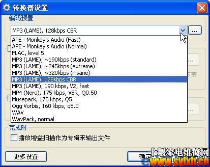 一提到音、http://www.sylxb.cn/movie/' target='_blank' class='infotextkey'>视频格式转换,大家一定就会想到一些专业的转换工具软件。如果只是一、两次的转换,或是临时需要转换某一http://www.sylxb.cn/movie/' target='_blank' class='infotextkey'>视频、音频,难道还要去找专业的转换工具吗?其实在我们身边就有这样的转换“专家”,只是我们没有注意而已。利用身边的常用软件,也能让格式转换自由自在。 一、音频格式转换 Foobar2000就可以 运行Foobar2000,将需要转换的音频文件添加到播放列表中。在播放列表中的文件上单击右键,依次选择“转换”→“转换到”(转换到同目录)命令(图1)。在弹出的“转换器设置”对话框中设置转换后的音频格式,单击“确定”按钮之后,程序便会自动完成转换(图2)。