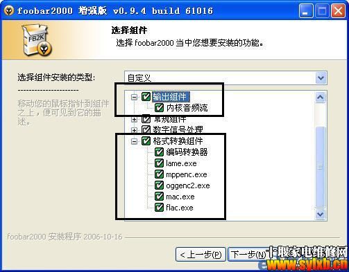 图2 小提示:要使用Foobar2000的转换功能,在安装时需要勾选“格式转换组件”中的项目,同时建议将“输出组件”也勾选(图3)。