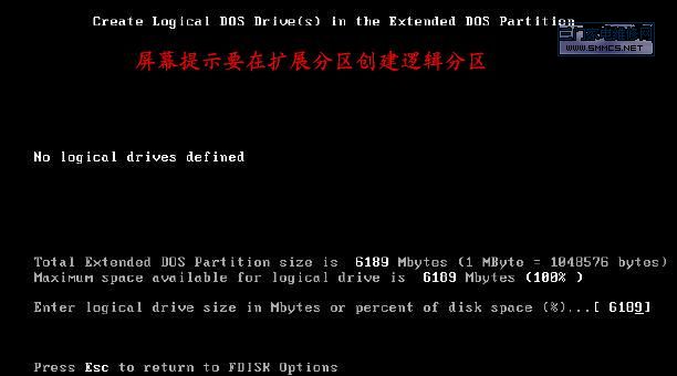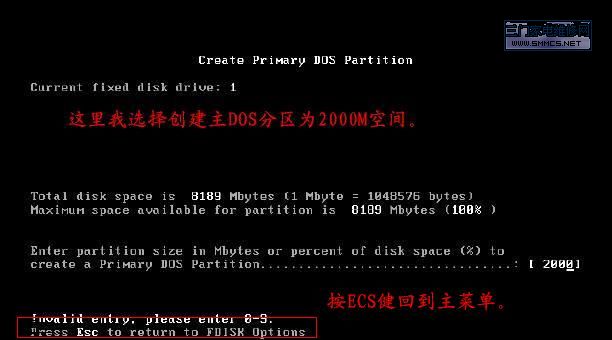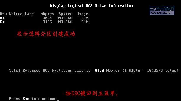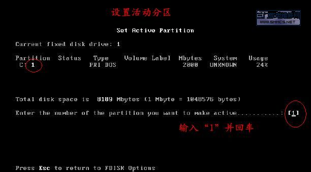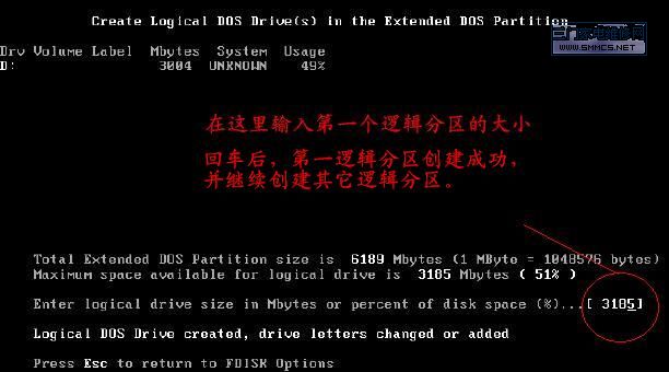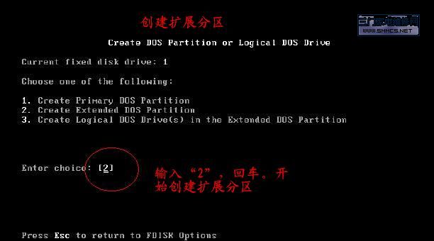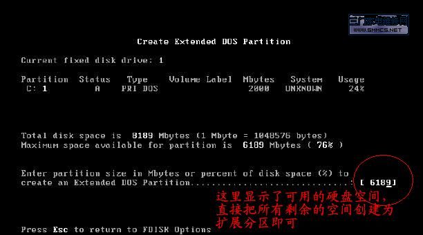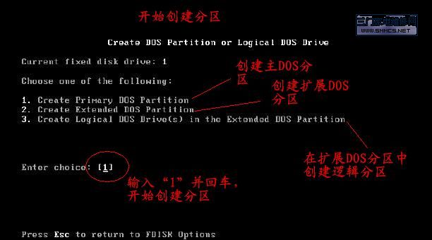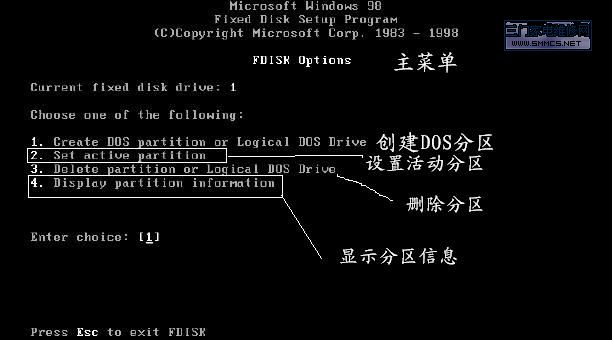 在DOS下用FDISK工具分区的图解