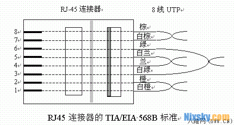 标准568A:橙白--1,橙--2,绿白--3,蓝--4,蓝白--5,绿--6,棕白--7,棕--8; 标准568B:绿白--1,绿--2,橙白--3,蓝--4,蓝白--5,橙--6,棕白--7,棕--8。