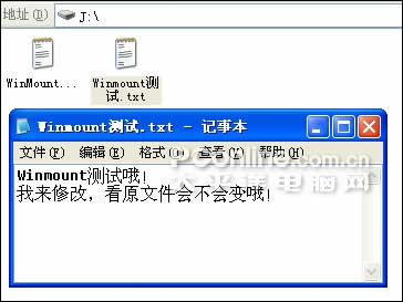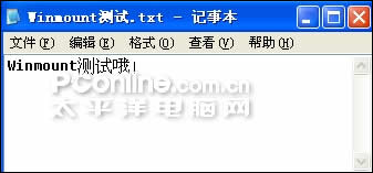 3.检查一下原来之“Winmount测试.txt”,如图15,还是原来之内容,原封不动哦!