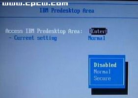 Access IBM Predesktop Area”设为“Disable
