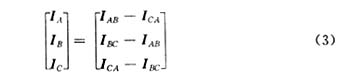 图1中的配变支路为“Δ-YO”接线的配电变压器,如图2所示。配变高压侧三相负荷电流由式(2)、(3)计算。