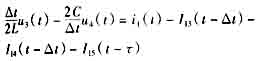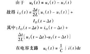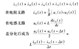 经过上述等值处理,对任何复杂的电网都可以变为只包含电源,电阻性元件,可能还有开关的等值网络。这样就可以依据电路定律得到下面的公式,用离散的时间间隔,求解整个暂态的过程。