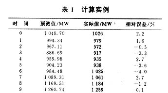 对南京市某日24点的负荷进行预测,所得结果如表1。