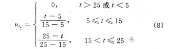 设论域u={x},u到闭区间〔0,1〕的任一映射uA(x)∶u→〔0,1〕,x→uA(x)确定了u的一个模糊子集,简称模糊集,记作A,该映射称为A的隶属函数。uA(x)的大小反映了x对模糊集A的隶属程度,简称为隶属度。实数集合上常用的隶属函数为F分布,主要有矩形分布,梯形分布,抛物形分布等,在实际应用中可根据对象特点加以选择。