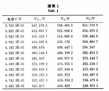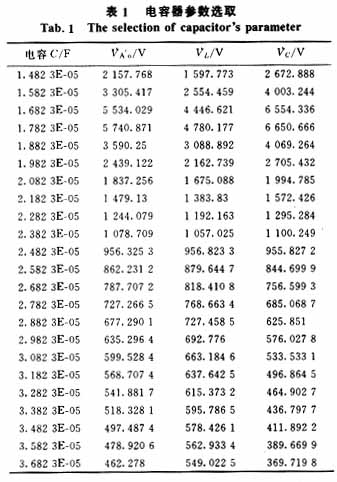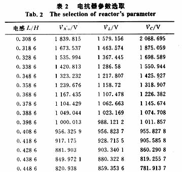 表1为电感值0.408 6H保持不变,调整电容器参数的计算结果;表2为电容恒为2.482 3E-05F保持不变,调整电抗器参数的计算结果。